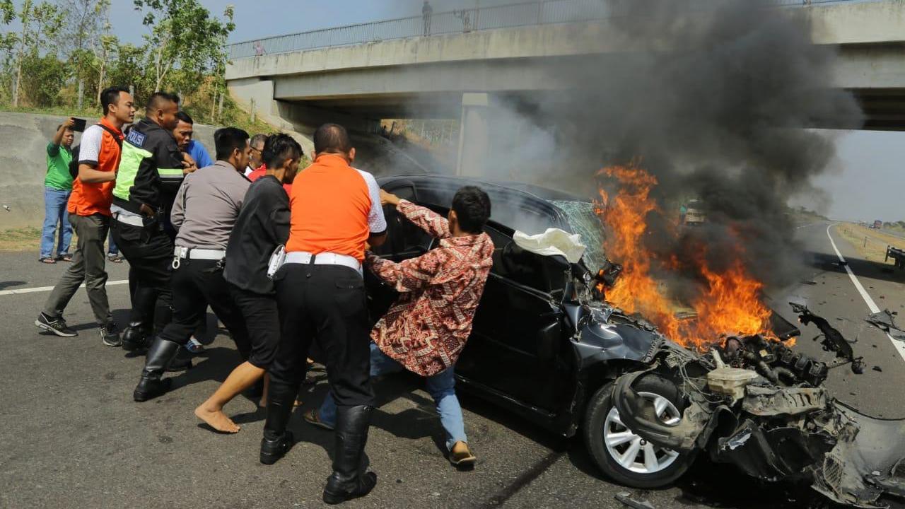 "Petugas kami petugas rombongan pengawal Pak Anies langsung turun setelah tahu ada mobil terbakar. Kami pun berusaha mengeluarkan korban, dan segera diantar ke rumah sakit terdekat. Pak Anies pun ikut,"ujar Kepala Unit 9 PJR Cipali, AKP Azis Syamsuddin kepada JawaPos.com, Sabtu (6/10/2018).
